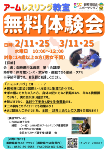 【アームレスリング教室】無料体験会 開催します!